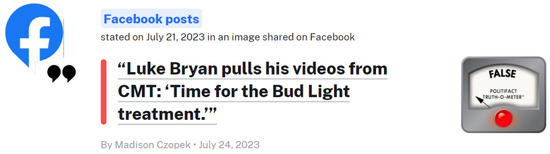 - Snopes. Available online: https://www.snopes.com/ (accessed on 12 August 2023).