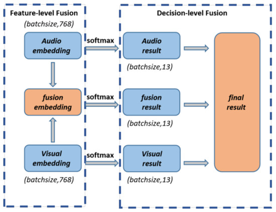 As shown in Figure 5, we propose a two-stage hybrid fusion strategy, which consists of feature-level fusion and decision-level fusion. This module fuses information from both audio and visual modalities in two stages and trains jointly to achieve a more-robust solution.