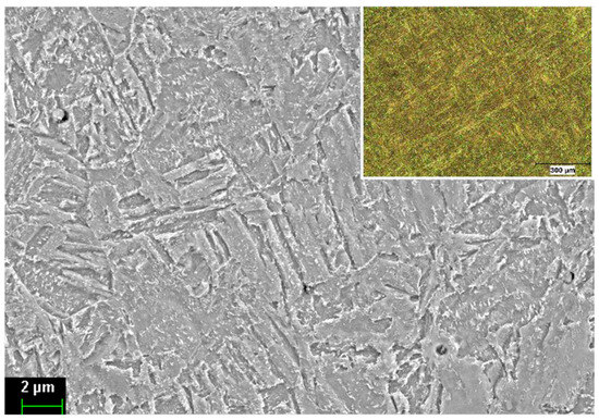 Two micrographs of the casted samples can be found in Figure 1, where the tempered martensite-dominant micro-structure could easily be observed at 5000× and 50× magnification. For metallographic inspections, a related sample preparations procedure was applied which consists of several grinding and polishing operations followed by etching with 5% nital solution.
