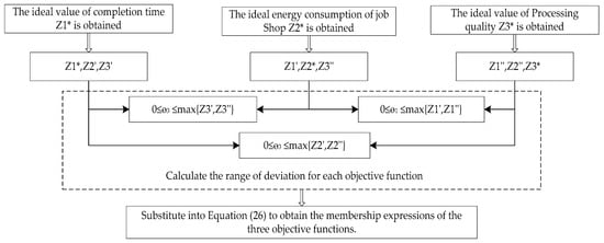 In summary, the purpose of this research was to address the scheduling problem in a flexible workshop by establishing a multi-objective optimization model aimed at maximizing the processing quality while minimizing the makespan and workshop energy consumption. This study aimed to optimize resource allocation strategies, reduce energy consumption, and provide decision-makers with various feasible scheduling solutions to achieve an environmentally friendly production system.