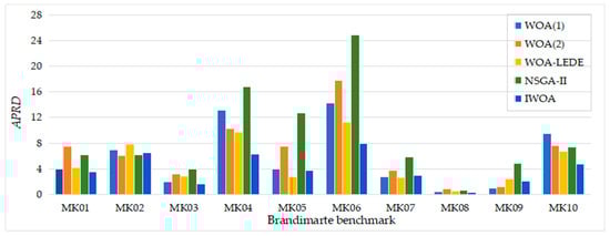 (4) According to the literature [41,42,43], the optimization algorithm based on WOA can effectively solve the shop scheduling problem. The experimental results show that the improved algorithm based on the WOA algorithm is better than the improved algorithm based on classical algorithm (such as genetic algorithm, particle swarm optimization algorithm, ant colony algorithm, tabu search algorithm, etc.), and also better than the improved algorithm based on the memetic algorithm, teaching and learning optimization algorithm, and biogeographic-based optimization algorithm.