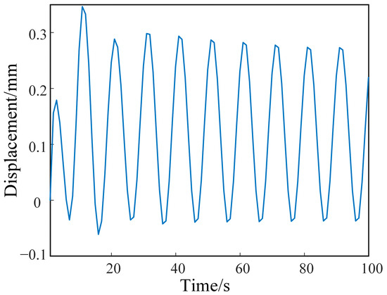 At the beginning of the winding short-circuit vibration, the transient vibration component and the steady vibration component coexist and the overall vibration of the winding is the result of the superposition of the two vibration components. The axial vibration of each disk in the transient state is mainly the damped forced vibration in the excitation of electromagnetic force. Figure 3 shows the motion curve of the axial damped forced-vibration system of the disk of the winding.