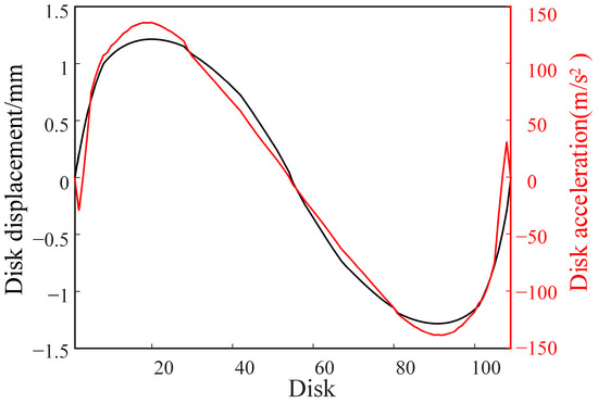 Displacement and acceleration of each disk.