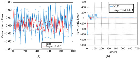 Simulation results: (a) comparison of mean square error results; (b) simulation results of heading angle error.