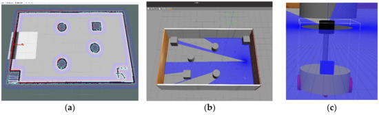 - Talwar, D.; Jung, S. Particle Filter-based Localization of a Mobile Robot by Using a Single Lidar Sensor under SLAM in ROS Environment. In Proceedings of the 2019 19th International Conference on Control, Automation and Systems (ICCAS), Jeju, Republic of Korea, 15–18 October 2019; pp. 1112–1115. [Google Scholar] [CrossRef]