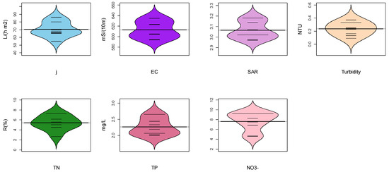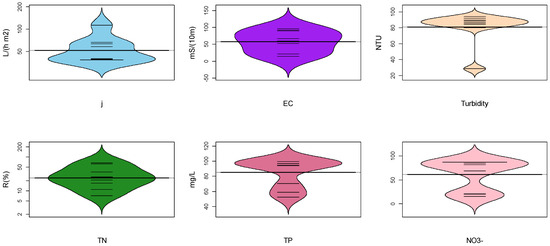 Bean plot screening of the seven ultrafiltration process characteristics.