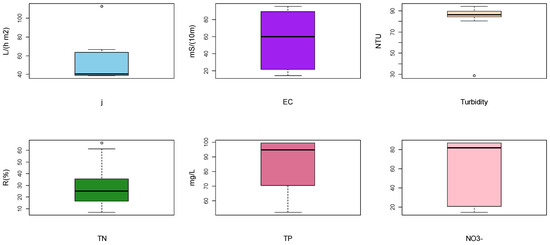 Boxplot screening of the seven ultrafiltration process characteristics.