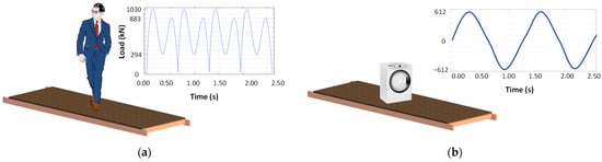 In this section, the different loading cases are presented. The first one is a walking time history of one person (Figure 5a), and the second one is the time history of a washing machine (Figure 5b).