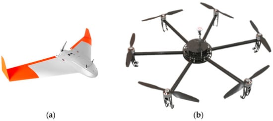 Two types of drones: (a) fixed-wing drone, (b) rotary-wing drone.
