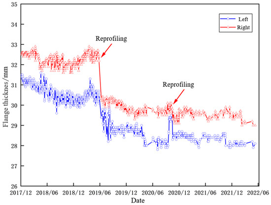 - Xu, Z.; Dong, X.; Peng, Z. Mechanism and Control Measures for Abnormal Wear of Small Curve Rims Based on Wheel Rail Matching. J. Vib. Shock. 2022, 41, 127–133. [Google Scholar]