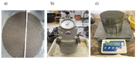 Testing of concrete mix—(a) consistency, (b) air content, (c) density.