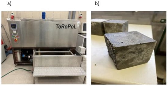 (a) A chamber for testing the frost resistance of concrete and (b) samples after the test.