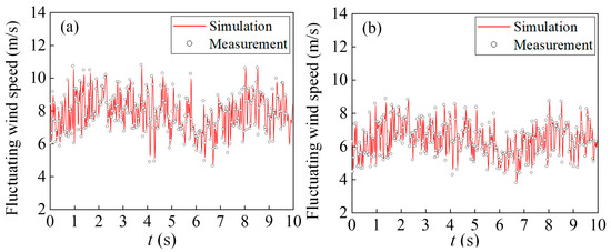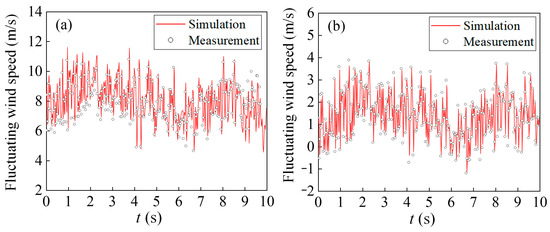 Pulsating wind speed at the top of the cutting: (a) z-direction; (b) x-direction.