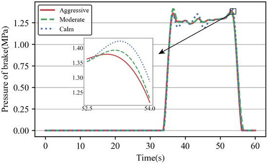 Brake cylinder pressure change curve for drivers with different driving styles.