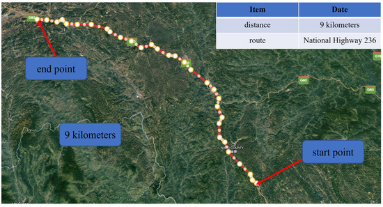 To verify the effectiveness of the control strategy proposed in this article, vehicles located in an actual driving dataset of a continuous 9000 m on National Highway 236 were selected as the basis for simulation, as Figure 18 shows. The labels for the driving styles of the vehicles on this section were acquired by classifying the driving styles in the preceding section, and the simulation platform incorporated the actual speed and road conditions. The approach put forth in this paper (DS-MPC) should be contrasted with that of PID control in a system for fixed speed cruise control.