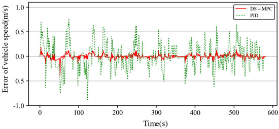 DS-MPC and PID speed tracking error curve under actual working conditions.