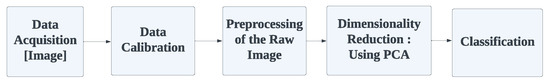Since the first work on remote sensing was published, the popularity of the hyperspectral camera has been increasing exponentially [6]. Thus, the areas of application for hyperspectral imaging have also increased, such as analytical techniques for nanoscale materials [7], plant seeds [8], fruit quality and safety [9,10], biological tissues [11], and wound care [12].