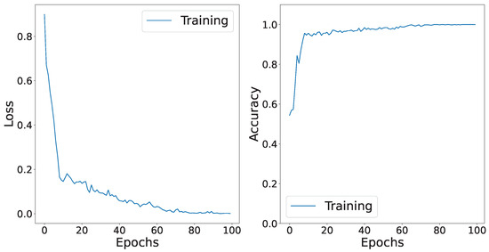 The accuracy and loss curves after finishing the iterations for the black ice data taken from a distance of 30 m.