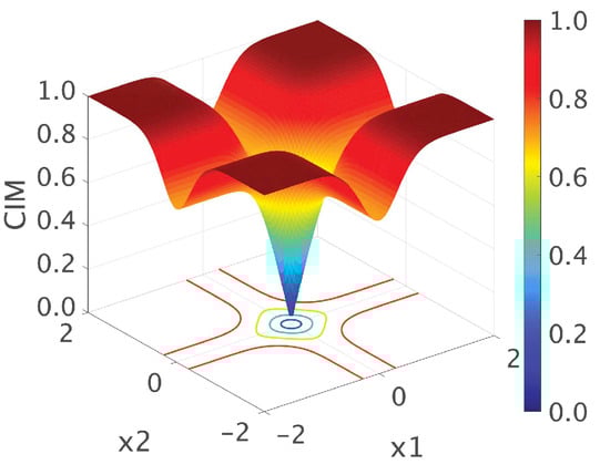 A nonlinear metric called CIM is derived from the correntropy []. CIM quantifies the similarity between two data points and as follows: