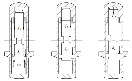 Similarly, as shown in Figure 6, there are two cases of forces on the outer plunger, as follows.