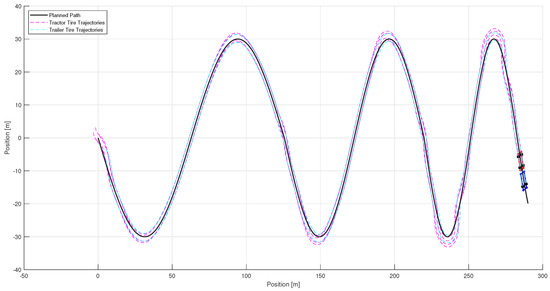 - Yue, M.; Hou, X.; Yang, L. An efficient trajectory tracking control for tractor-trailer vehicle system. In Proceedings of the 36th Chinese Control Conference (CCC), Dalian, China, 26–28 July 2017; pp. 546–551. [Google Scholar]