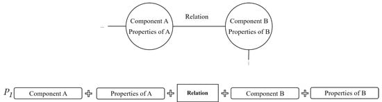 Figure 4 illustrates a representation of information from a physical model in a graph. Nodes within the graph contain detailed information and properties of specific components, while the relationships between nodes represent the connections and associations between these components. In physical models, these relationships could include “connected to” or “contains” along with different associated properties. To transform this information represented in the graph into text, the pattern is used, as shown in Figure 4.