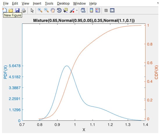 An additional refinement to the presented approach might be based on the use of the Gaussian Mixture model for several hysteron distributions differing in mean values and variances or, e.g., some other type of kernel (Epanechnikov, triangular). In the first case mentioned, we think that the MATLAB toolbox Cupid [32] might be useful. Figure 5 depicts the probability density function (PDF) and the cumulative density function (CDF) for a mixture of two normal distributions with different mean values, variances and weights. The plot was obtained using the commands: