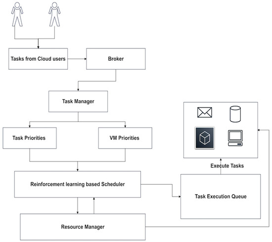 - Peng, Z.; Cui, D.; Zuo, J.; Li, Q.; Xu, B.; Lin, W. Random task scheduling scheme based on reinforcement learning in cloud computing. Clust. Comput. 2015, 18, 1595–1607. [Google Scholar] [CrossRef]