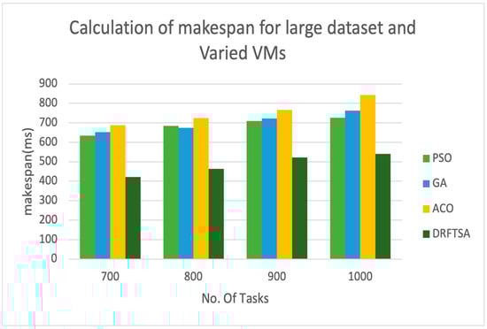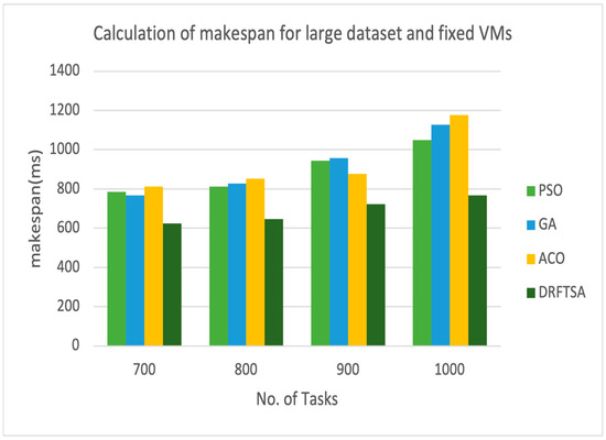 5.4. Calculation of Makespan for DRFTSA Using Large Dataset by Using Fixed Number of VMs