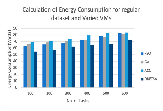 5.6. Calculation of Energy Consumption for DRFTSA Using Regular Dataset by Using Fixed Number of VMs