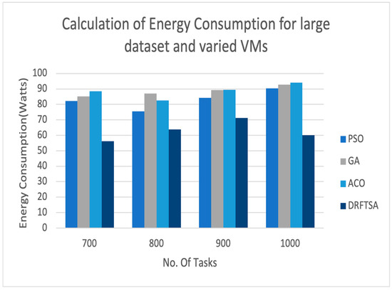 5.8. Calculation of Energy Consumption for DRFTSA Using Large Dataset by Fixed Number of VMs