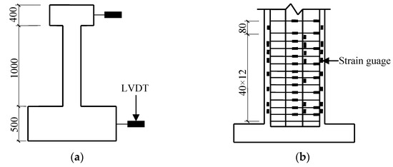 Layout of LVDTs and strain gauges. (a) LVDT distribution on pier columns; (b) Strain gauge distribution on steel rebars.