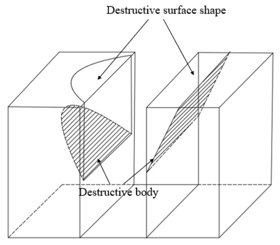 The destruction body is divided into two parts, including the upper triangular prism (abcdef) and the lower triangular prism (defg). The directions of each force are shown in Figure 7.