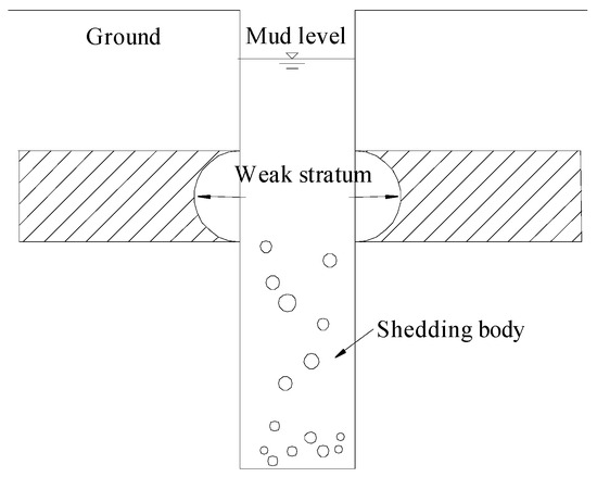 Local instability of the foundation soil is typically caused by weak interlayers, as illustrated in Figure 2. This instability can result in over-excavation, which increases the filling coefficient of the poured concrete and raises construction costs and difficulties [22]. The local stability of the trench wall with retaining slurry is also influenced by the infiltration of slurry into the soil surrounding the trench wall. The seepage force generated by the slurry infiltration into the fresh excavation surface can maintain the local stability of the soil on the trench wall before the formation of the slurry skin.
