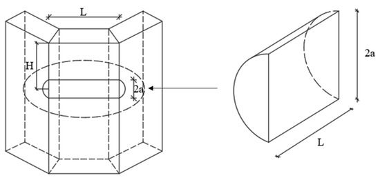 We assume a partial sliding body with a single-sided trench wall, as shown in Figure 8, which exhibits circular sliding. The sliding body is simplified into a semi-circular cylinder with radius a, where the cylinder length is L, i.e., the single trench length, and the depth of the sliding body is H.