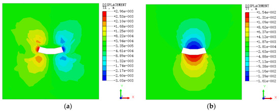 Horizontal displacement cloud around the trench wall at the depth of Z = −62 m. (a) X-direction; (b) Y-direction.