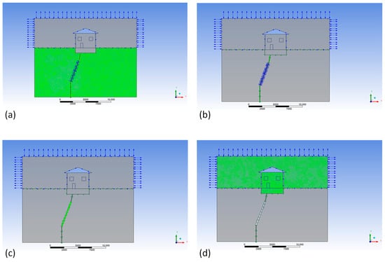 Entry conditions: (a)—ground area/district is selected, (b)—fragment of a crack is selected, (c)—part of cavity (void space) is selected, (d)—surface area is selected.