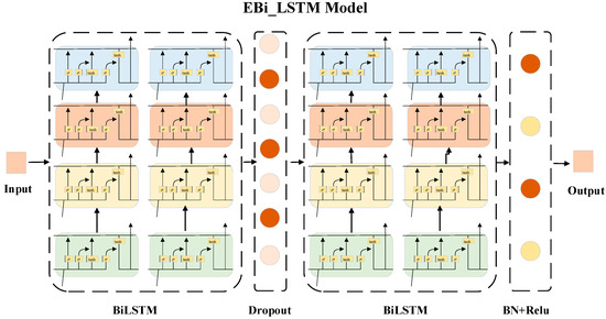 The EBiLSTM structure receives the original Raman spectral signal and continuously learns the multi-dimensional short-term, medium-term, and long-term temporal information and feature information of the spectral data, through the integrated bidirectional input, forget, and output gate structures and memory units [20]. Meanwhile, to address potential overfitting issues during model training, dropout layers [21] and batch normalization layers [22] are designed to reasonably reduce overfitting and improve model robustness. The specific EBiLSTM architecture is illustrated in Figure 1.