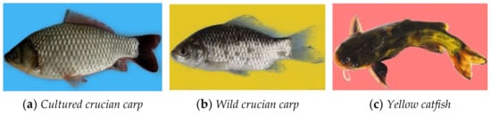 In this paper, three common freshwater fish species, cultured crucian carp, wild crucian carp, and yellow catfish, were selected in the pressure damage experiment. The average body length was 120 mm. The different kinds of fish used in the experiment are shown in Figure 2.