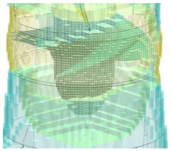 In this paper, for the three-dimensional calculation of the axial flow pump, the maximum discrete velocity number scheme of D3Q27 and the octree lattice structure were used to organize the lattice scale refinement scheme in different regions of the fluid domain. Specifically, the division of the lattice structure realized the construction of the whole channel lattice model by setting the scale for each part of the original geometric structure or drawing the geometric inclusion structure to set the analytical scale and far-field scale for the corresponding region. Schemes of different mesh sizes are shown in Figure 4.