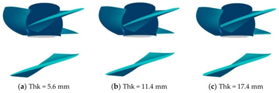 Three runner schemes with different blade leading-edge thicknesses were designed for the prototype axial flow pump, as shown in Figure 7.