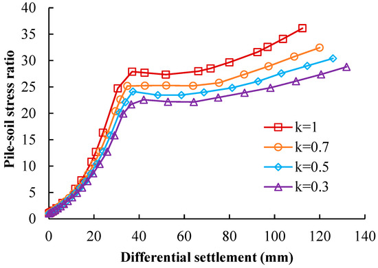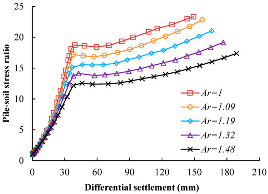 Influence of the pile–soil stress ratio on differential settlement of the embankment.
