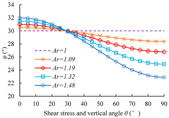 Under the action of self-weight, the long axis of the soil particles tends to be parallel to the sedimentary surface. Therefore, under the action of horizontal shear stress, the sliding surface is easier to form, and the shear strength is lower. Under the action of vertical shear stress, the soil particles are prone to dislocation and rearrangement, the sliding surface is more difficult to produce, and the shear strength is higher. The experimental research of relevant scholars [57] shows that the friction angle of soil is closely related to the direction of principal stress, and the strength of soil in different loading directions is obviously different. Therefore, an accurate understanding of friction angle anisotropy is helpful to accurately evaluate the shear strength and bearing capacity of soil and predict the risk of landslides and instability in embankment engineering.