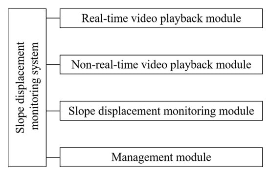 In this paper, the designed slope displacement detection system is composed of a remote video monitoring system plus a video processing centre. According to the requirements of the slope displacement detection system, the framework of the systems’ function is analysed and designed starting from the topmost layer. The system structure framework diagram is shown in Figure 2.