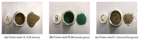Three types of grass seeds were chosen for this experiment, all of which are well-suited for planting in northern regions and possess a proven track record of successful germination and survival rates. These three varieties of grass seeds are depicted in Figure 6.