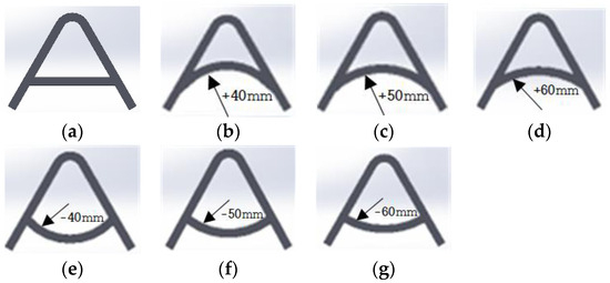 3], the existing parameters were retained, and cross-member reinforcements were added to the torsion beam suspension to analyze their effects. Using SolidWorks, six different cross-sectional shapes and one reference shape were modeled based on the overall structure of the torsion beam [