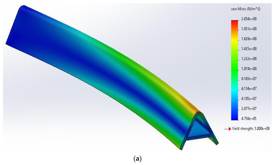 11] conducted a strength analysis of torsion beam suspension for an MPV vehicle. They utilized ADAMS to model the torsion beam suspension and reported the maximum stresses applied to the beam in various conditions: 529.5 MPa in bumpy conditions, 238.8 MPa while braking, 168.8 MPa while accelerating, and 335.9 MPa while steering. Taking these stresses into account, they emphasized the importance of selecting the appropriate material and thickness for the cross-member. Wang et al. [