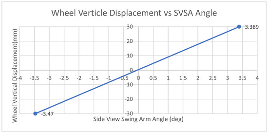 20]. To understand these three quality factors, the side view swing arm (SVSA) angle was used as a key parameter. The SVSA angle is a significant geometric factor that affects the ride comfort performance of a vehicle; a negative SVSA angle indicates superior ride comfort [