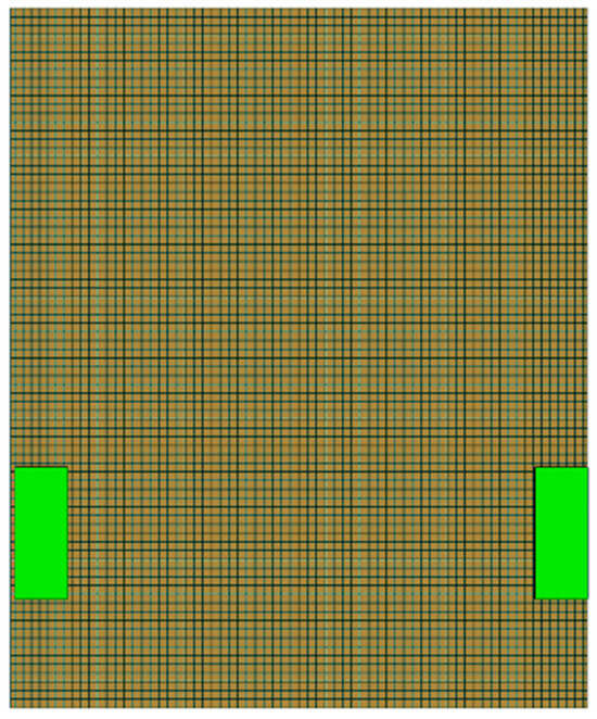 First, gravity is applied to the structure and the acceleration of gravity is taken as −9800 mm/s2. Secondly, the self-weight of the diaphragm as well as the ribbed plate is applied in the form of concentrated loads at the corresponding nodes of the beam unit at magnitudes of −261,995 N (pivot diaphragm), −60,155 N (hollow diaphragm), and −12,057 N (ribbed plate). A multi-scale model of the steel channel beam is shown in Figure 5. The initial position of the pad is shown in Figure 6.