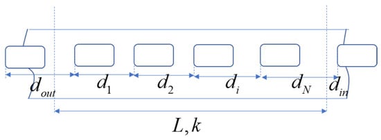 In Figure 2, the length of the road section is denoted by L, the number of vehicles is N, and the corresponding traffic density is k. The intervehicle distance is , the headway between the first vehicle and the preceding vehicle is , and the headway between the last vehicle and its following vehicle is . The relationship between density, vehicle number, headway, road length, , and can reveal the following.